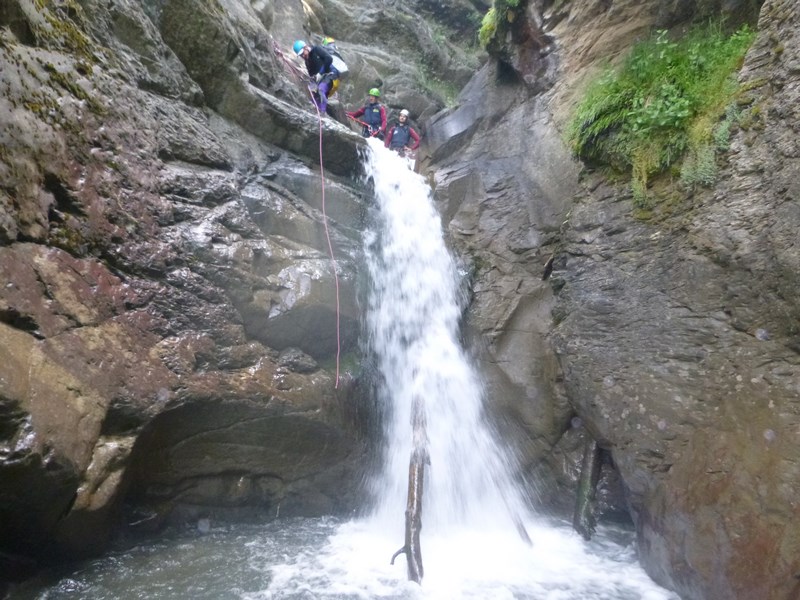El descenso consta de varias rampas largas fácilmente destrepables y de dos sencillos rápeles, el más largo de 15 metros. Dejo aquí dicho por si algún barranquista está interesado en bajar por este desconocido lugar, que por favor intente pisar fuera del manto de musgo, sería una lástima que en cuatro días nos cargaramos esta maravilla por pasar como rebaños de ovejas.